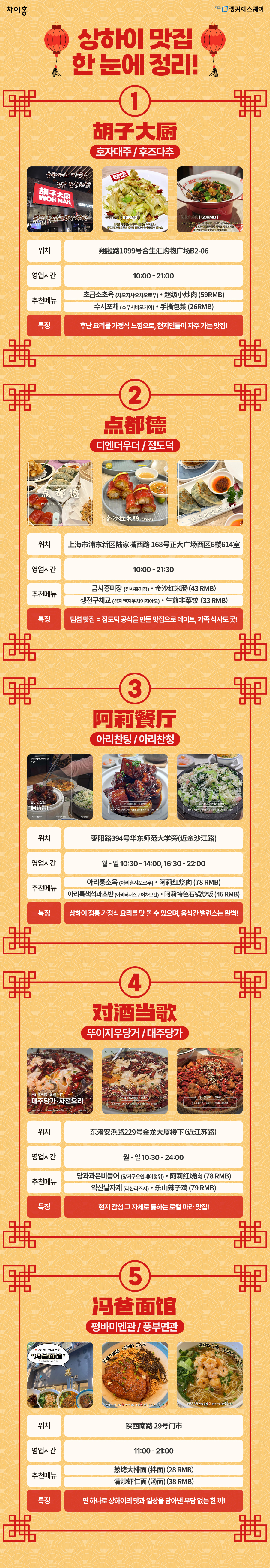 그래서 오늘은 상해의 다양한 맛집들을 사펴보는 랜선 탐방을 해보려 합니다.
