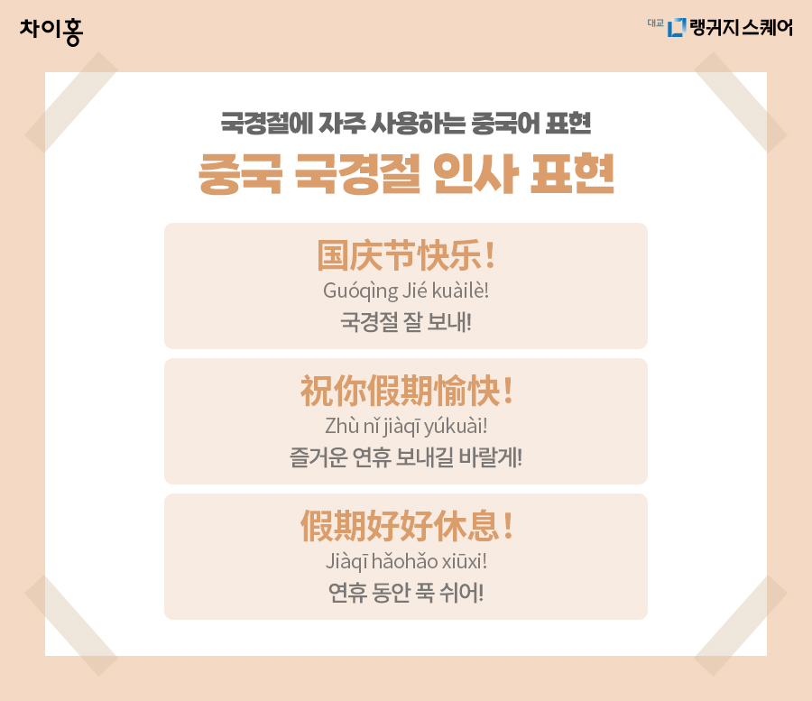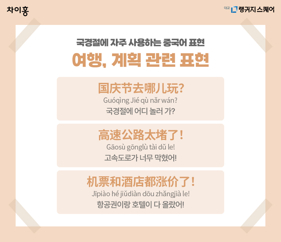 중국 국경절을 이해하면서 위와 같은 실전 회화를 함께 익히면