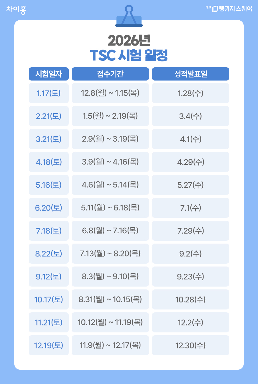 접수 기간과 성적 발표일도 함게 체크해두면 좋아요!