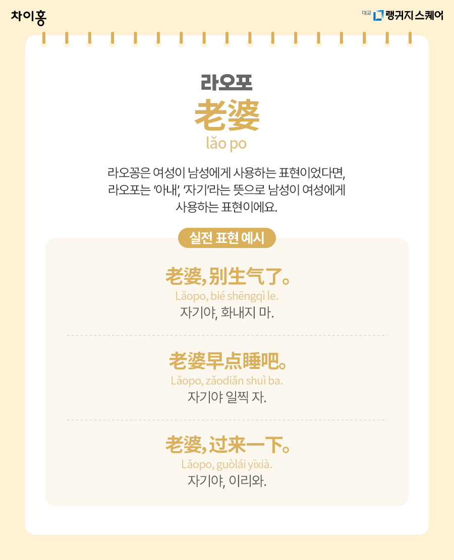 라오포는 반대로 여성에게 사용하는 말이에요.