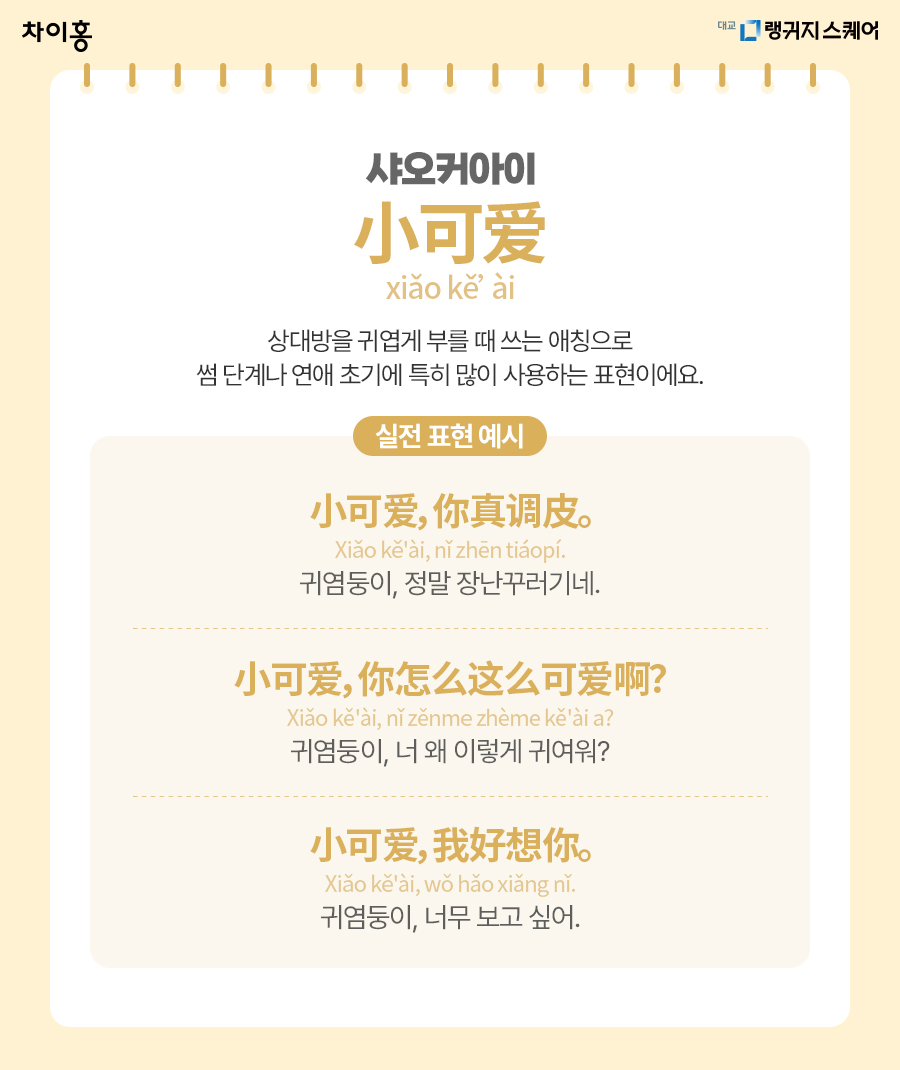 샤오커아이는 썸부터 연애 초반에 특히 많이 사용하는 표현입니다.