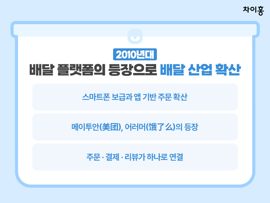 이때부터 중국의 배달은 특정 상황에서 이용하는 서비스가 아닌,